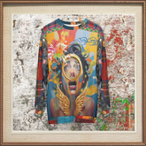 Channel the raw energy and emotion of survival with the 'OMFG WTF Just Happened Palisades' Unisex Sweatshirt. Featuring a chaotic and vibrant depiction of shock and resilience, this design reflects the uncertainty and intensity Anita felt while navigating the devastation in Los Angeles. With bold colors, intricate details, and mixed patchwork sleeves, this wearable art piece brings a story of endurance to life.