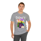 Bring a little attitude—and a lot of humor—to your wardrobe with the Don’t Be an Eggplant Short Sleeve Unisex Tee, a cheeky play on words reminding the world not to act like…well, you know. Instead of saying it outright, this tee lets the bold eggplant graphic (complete with splashes of rainbow color) do the talking for you. Fun, vibrant, and a little mischievous, it’s perfect for anyone who appreciates smart humor and expressive wearable art. Available in 12 colors, this classic unisex jersey short sleeve tee fits like a well-loved favorite thanks to its soft feel, quality print, ribbed knit collar that boosts structure, tapered shoulders for long-term shaping, and dual side seams that help the tee maintain its silhouette over time.