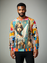 Step into a celestial dreamscape with the 'Angels in Paris' unisex sweatshirt, a standout piece from our Gold Label Limited Edition collection. This wearable masterpiece features a cherubic angel soaring above iconic Parisian landmarks—including the Eiffel Tower—bathed in a radiant kaleidoscope of color. Each top is uniquely finished with eclectic sleeve prints that blend art, fashion, and storytelling into one unforgettable statement.
