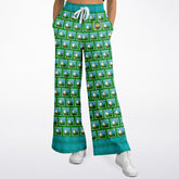 Score style points on and off the course with the Golf - Hole in One in Green with Chinese Lantern Eco-Poly Wide Leg Pants. Featuring a playful, retro-inspired print of golf scorecards in crisp green, teal, and white, these pants bring whimsical charm to your game-day or casual look. A bold teal hem with a subtle Chinese lantern motif adds an elegant, unexpected twist, making this piece truly stand out.