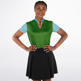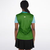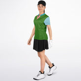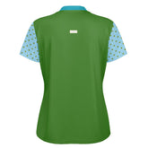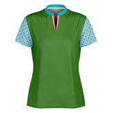 Bring a fresh, natural vibe to the fairway with the My Green Golf Scenery Mandarin Collar Ladies Golf Polo Jersey. This eye-catching polo features a rich green body accented by light blue sleeves with playful green polka dots, capturing the essence of lush landscapes and open skies. The mandarin collar in turquoise with a coral placket trim adds a modern and stylish flair. Made from breathable, moisture-wicking fabric, it keeps you cool and comfortable through every round. The tailored fit allows ease of movement while maintaining a polished silhouette—perfect for showcasing your personality on and off the course.