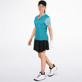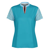 My Turquoise Golf Scenery Mandarin Collar Ladies Golf Polo Jersey