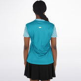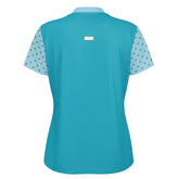 Brighten up your game with the My Turquoise Golf Scenery Mandarin Collar Ladies Golf Polo Jersey. This stunning design pairs a vivid turquoise body with light blue sleeves sprinkled with playful green polka dots, creating a fresh and breezy look. The mandarin collar in sky blue with a coral placket detail adds a modern, feminine touch, while the back proudly displays the discreet Club Bedlam logo for a signature finish. Crafted from lightweight, breathable, and moisture-wicking fabric, it offers optimal comfort and freedom of movement for every swing. Perfect for making a stylish statement on the course or at the clubhouse.