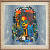 Every detail tells a story, from the striking contrast between the central figure and the intricate sleeve artwork to the layered street-inspired textures that echo the raw vibrancy of urban murals. This sweatshirt is not just clothing—it’s a wearable statement of power, confidence, and unapologetic self-expression. Perfect for those who live life in full color and refuse to blend in, it’s an instant conversation starter whether styled with jeans, joggers, or layered over a skirt for a street-chic edge.