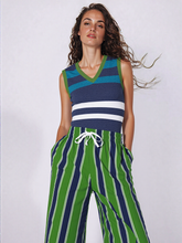 Wimbledon Regal Stripe in Green and Blue Eco-Poly Wide Leg Pants