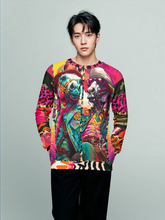 With vibrant patchwork sleeves blending celestial hues, abstract space elements, and classic Western motifs, this sweatshirt is a wearable masterpiece. The relaxed fit and soft fleece lining ensure comfort whether you're wrangling planets or just making a statement on Earth.