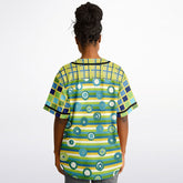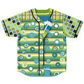Blue Green Abstract 70s Blob Stripe Reversible Eco-Poly Short Sleeve Reversible Baseball Jersey