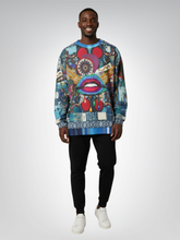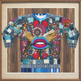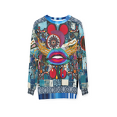 Path to Ascension – ALL Sins Revealed unisex sweatshirt channels an otherworldly fusion of symbolism, spiritual storytelling, and bold artistic expression. At the center, a radiant winged mouth rises like a cosmic oracle, surrounded by celestial wheels, abstract energies, and surreal iconography that hint at transformation, reckoning, and awakening. Vivid reds, electrifying blues, deep indigos, and vibrant purples collide across a patchwork-style background, creating a rich tapestry of movement and depth. This top feels like wearing a visionary mural—mystical, trippy, and unapologetically expressive.