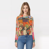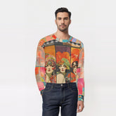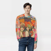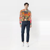 Vibrant hues of orange, red, and teal bring this top to life. The colorful patchwork sleeves add a unique artistic flair, combining various patterns and textures. Crafted from a soft, durable fabric blend, this sweatshirt ensures both comfort and longevity.