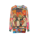 Step into the roaring 20s with the 'Flapper Girl in Triplicate' unisex sweatshirt. This eye-catching design features a vibrant triptych of flapper girls adorned with vintage headpieces and feathers, capturing the essence of Jazz Age glamour.
