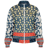 Turn heads in the Blue Vine Over You Floral Stripe Unisex Eco-Poly Track Jacket, where vintage charm meets streetwear edge. This statement jacket is an eclectic fusion of ornate navy vine prints, soft yellow florals against a rich blue backdrop, and vibrant accents of rustic red, plaid, and star-spangled stripes. Each panel tells a different story, brought together in perfect harmony for those who dress boldly and unapologetically.