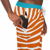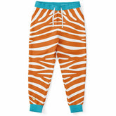 Unleash your inner wild side with the Zebra in Orange Eco-Poly Unisex Joggers, where fiery style meets cool comfort. These joggers feature bold orange and white zebra stripes that electrify your look, contrasted by vibrant turquoise cuffs and waistband for an unexpected pop of color. Crafted from midweight eco-poly athletic wear fabric, they’re wrinkle-resistant, quick-drying, and breathable—ideal for both lounging and stepping out in standout fashion.