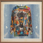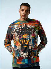 Make a bold statement with the 'Bastion of Glory' Street Art Patchwork Pattern Unisex Sweatshirt. The centerpiece of this design is a striking graphic of a young Black man with spiky dreads, rendered in vibrant graffiti-style artwork. Surrounding the figure is a dynamic array of tags, splashes of color, and urban motifs, capturing the spirit of street culture. The patchwork sleeves blend different patterns and textures, adding an eclectic and eye-catching touch. This sweatshirt is as comfortable as it is powerful, making it perfect for those who want to wear art that speaks volumes.