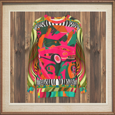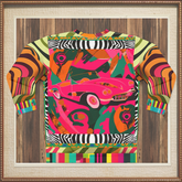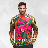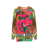 The sweater vibrates with dynamism and vitality, capturing the quintessential silhouette of a hot pink convertible set against an exuberant zebra print on the sleeves and bold colorblock motifs. Each stripe boasts a distinct, electric shade, contributing to a truly singular visual impact. Beyond its stunning appearance, the piece offers coziness with its fleece-lined interior, turning it into a wearable artwork that combines dramatic flair with snug warmth.