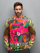 Experience the latest sensation from Shopsingletree's dynamic lineup: the 'Lil Pink Convertible Pop Art Unisex Sweater. This extraordinary garment weaves together the image of a dazzling hot pink convertible with an adventurous combination of zebra stripes and avant-garde patterns, unfolding in a riot of colors that envelops the sweater in its entirety. Crafted from premium materials, this fleece pullover doesn't just promise an attention-grabbing aesthetic but also unmatched comfort for all-day wear.