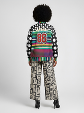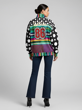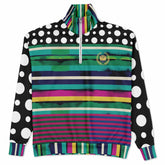 Black in the Pink Stripe Heavyweight Oversized Quarter Zip Sweatshirt brings bold, graphic, and unapologetically unique energy to your wardrobe. Wide bands of teal, navy, pink, yellow, and green wrap around the body in layered stripes, broken by painterly textures that add depth and dimension. The contrast sleeves explode with oversized white polka dots on black, while the high collar and cuffs bring everything together in a riot of color-blocked stripes. On the back, the bold appliqué-style “86” patch makes a statement, anchored above with the signature SingleTree Lane script logo in gold. The front chest crest adds a subtle nod to heritage styling, balancing the overall design.