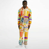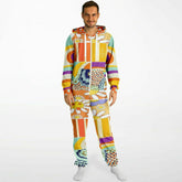 Featuring a unique patchwork design that combines retro floral patterns and playful polka dots, this romper is crafted from ultra-soft fleece fabric to keep you warm and comfortable in any season. Its unisex fit ensures inclusivity, while the breathable material provides ease of movement for lounging at home, running errands, or enjoying outdoor adventures.