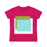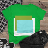 Turn heads in The Cubist, a bold cubed contemporary art design tee made for the modern woman. Featuring layered blocks of sky blue, olive green, and crisp white set against a vibrant base, this geometric composition channels minimalist cool with a pop-art edge. The clean lines and playful color palette make this tee a standout piece for art lovers and style seekers alike.
