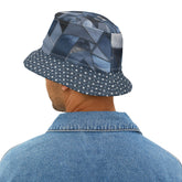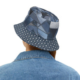 Meet the Dotted Indigo Kaleidoscope Vibrant Bucket Hat—a denim-cool statement that fuses playful dots with geometric edge. A deep-indigo polka-dot brim frames a crown of kaleidoscopic “denim” panels—angular shards in midnight, slate, and steel that read like a modern mosaic around the head. Lightweight, durable 100% polyester keeps it breathable and quick-dry for warm days, while the structured brim provides dependable shade at the beach, street fairs, and festival sets. It packs flat in your tote or suitcase and springs right back into shape when you’re ready to roll, making it an effortless travel piece. Inside, the dot print continues beneath the brim for that polished peek when a breeze flips the edge just so—subtle, intentional, and photo-ready.