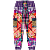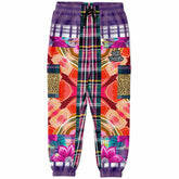 Turn heads with unapologetic flair in the Look of Betrayal Plaid Floral Cheetah LUXE Eco-Poly Unisex Cargo Joggers. These joggers are a dramatic fusion of contrasting prints—bold florals, fiery reds and oranges, purple gingham, layered plaid, and fierce cheetah print—crafted to reflect the chaos and beauty of a moment gone sideways. The dual cargo pockets on the outer legs add function without compromising style, perfectly placed among the clashing harmony of color and pattern. A deep purple self-fabric elastic waistband and ankle cuffs bring structure, while the adjustable drawstring waist ensures comfort on your terms.