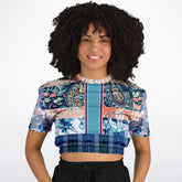 Dolores Park Paisley Plaid Eco-Poly Short Sleeve Cropped Pullover