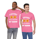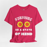 Bring the sunshine with you wherever you go in the Sunshine State of Mind Unisex Tee—a joyful nod to hippie vibes and feel-good energy. The bold front design features retro flower-shaped sunglasses and playful typography that radiates optimism. Whether you're lounging in the park or vibing at your favorite festival, this tee is your reminder that sunshine starts from within.