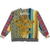 Designed to feel like wearable art layered with everyday comfort, Sunflowers in My 1888 Van Gogh Duo Heavyweight Unisex Cardigan brings bold contrast, texture, and color into one expressive statement piece. Inspired by Van Gogh’s iconic sunflowers, this cardigan blends painterly florals, vertical color stripes, graphic polka dots, plaid accents, and zebra-inspired trim into a deliberately mismatched yet harmonious composition that feels modern, artistic, and unmistakably SingleTree Lane.