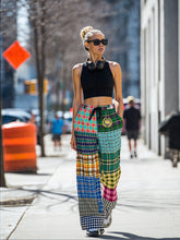 Turn every sidewalk into your personal runway with the Black Queen in Afrocentric Technicolor Plaid Eco-Poly Wide Leg Pants, a masterpiece of bold color, cultural pride, and effortless style. This dynamic patchwork design is a tribute to Afrocentric vibrancy, blending an array of plaid patterns that span a rich color spectrum—from deep forest greens and turquoise blues to golden yellows, hot pinks, earthy browns, fiery reds, and crisp black-and-white gingham. Each panel is thoughtfully placed to create visual rhythm, offering a one-of-a-kind composition that’s as much wearable art as it is fashion.