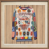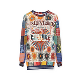 Celebrate the art of storytelling with the 'Storytelling is Culture' unisex sweatshirt. Highlighting vibrant starburst designs and a word collage featuring themes like experience, message, heritage, and communication, this sweatshirt is a tribute to the rich tradition of sharing ideas and history. The bold 'CULTURE' centerpiece emphasizes the power of words to connect us all.