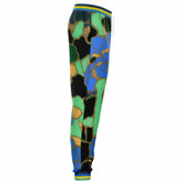Celebrate bold design and athletic nostalgia with the 1986 Blue Iris Mosaic Eco-Poly Unisex Joggers. Featuring a mesmerizing stained-glass effect in rich shades of blue, green, gold, and black, this dynamic pattern evokes the delicate complexity of an iris bloom viewed through a kaleidoscope. The varsity-style “86” graphic near the pocket adds a sporty, retro twist that nods to vintage athletic gear.
