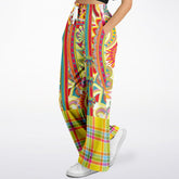 With bold paisleys, retro florals, kaleidoscopic swirls, and a splash of madras plaid at the hem, these pants don’t whisper style—they shout it from a rooftop in Haight-Ashbury. Crafted from midweight eco-poly athletic wear fabric, they’re lightweight, breathable, wrinkle-resistant, and ready for whatever your day throws at you—from brunch to beach to barefoot dancing in your living room.