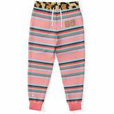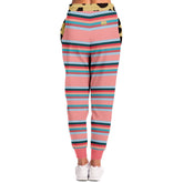 Elevate your athleisure game with our Blue Dragonfly Pink Striped Eco-Poly Unisex Joggers, the perfect blend of comfort, style, and sustainability. Designed for all-day wear, these joggers feature playful pink stripes and a leopard print waist, making them a standout addition to your wardrobe.