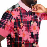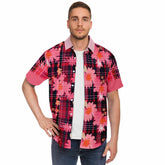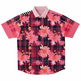Pink Chrysanthemum Plaid Floral Short Sleeve Button Down Shirt
